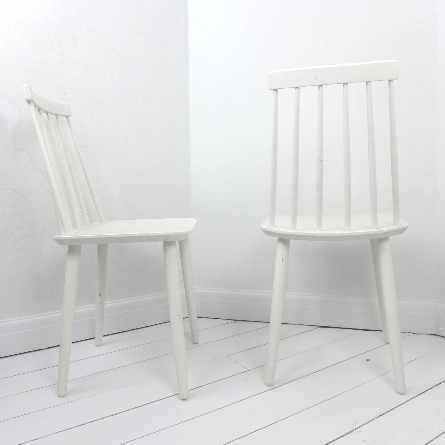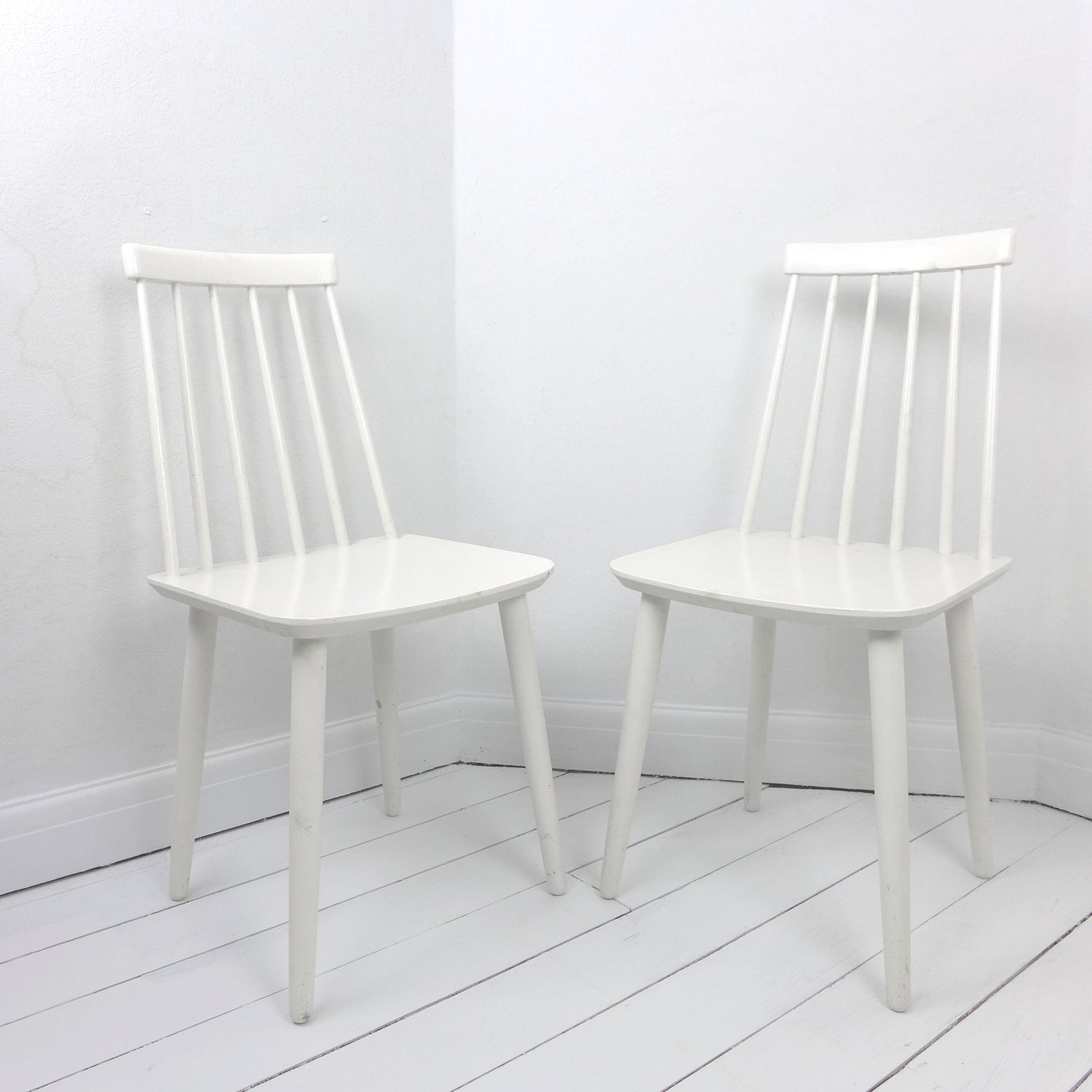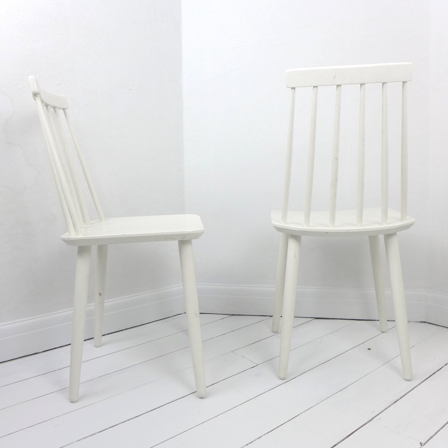 Danish Billund Stolefabrik Chairs - Pair in White - Mid Century